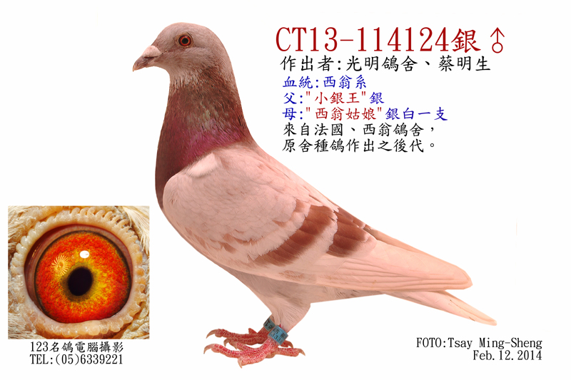 此鴿為2012年作出的4號西翁中的特優種鴿