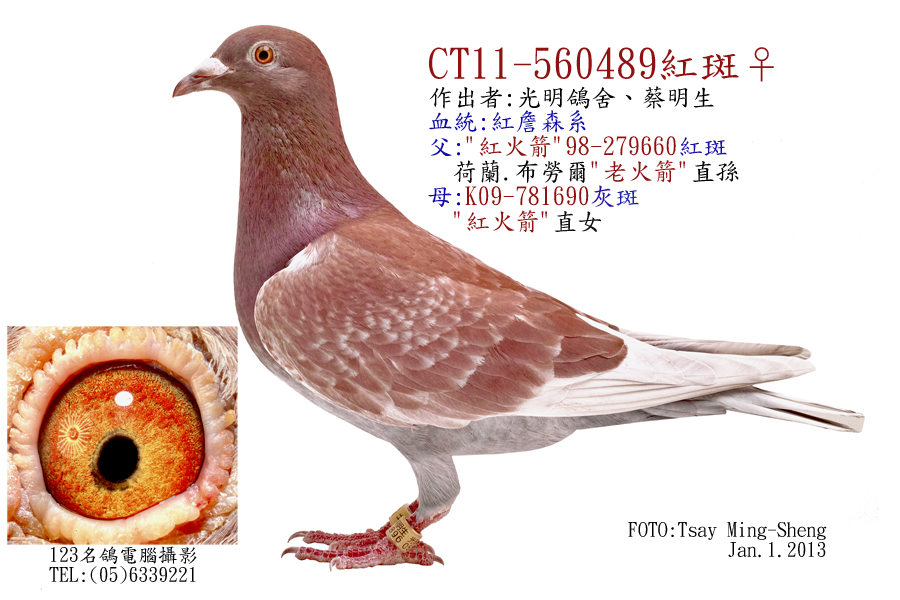 此鴿為2012年作出的4號西翁中的特優種鴿