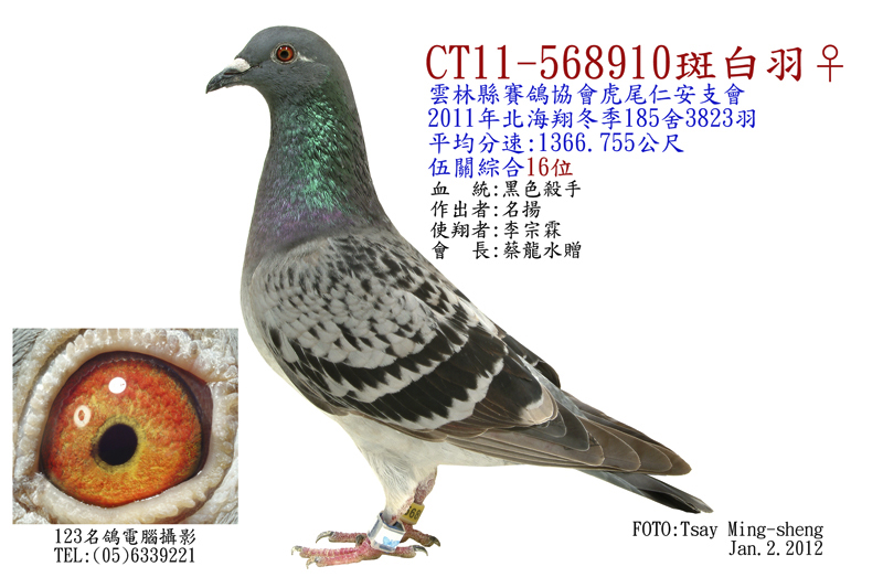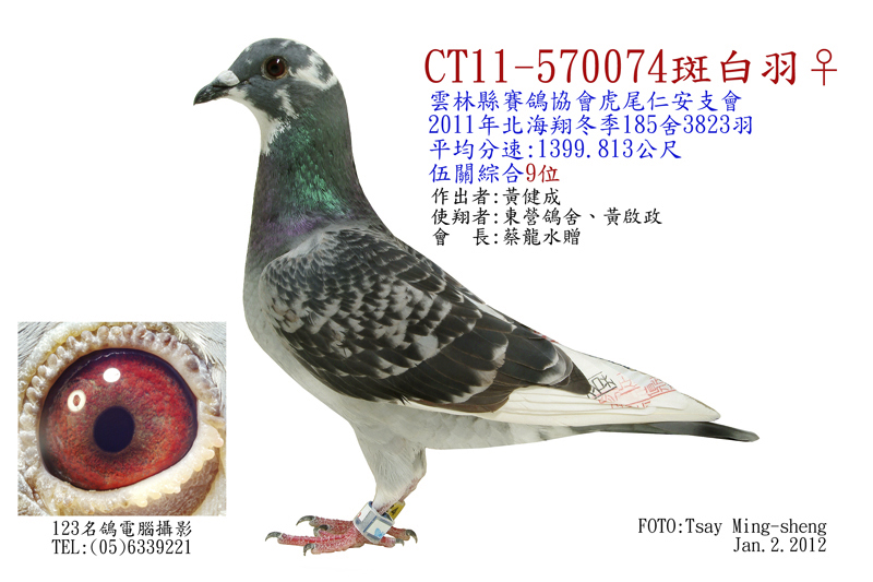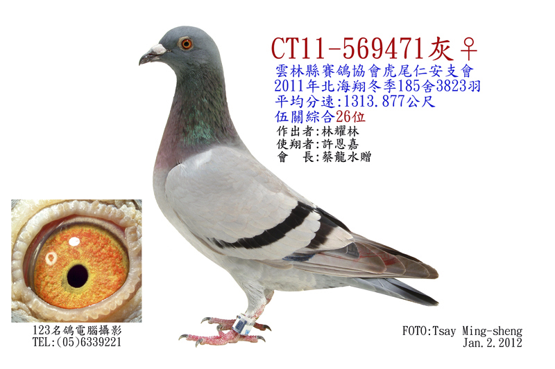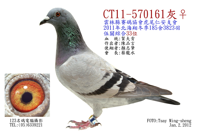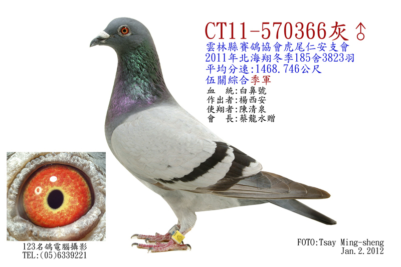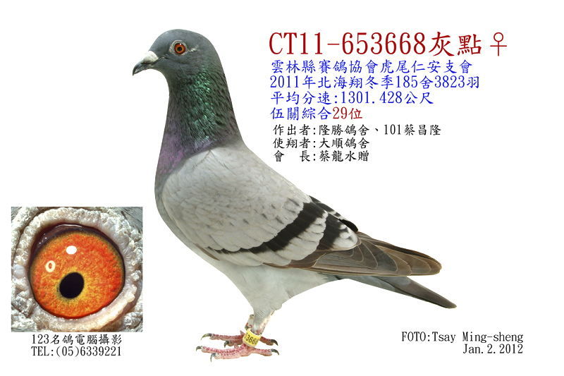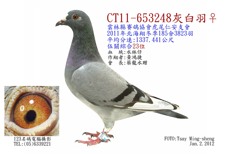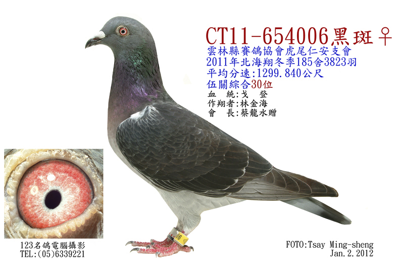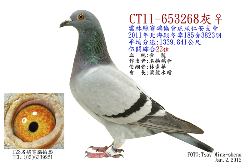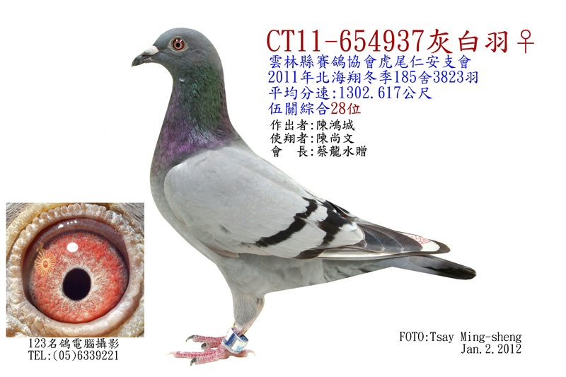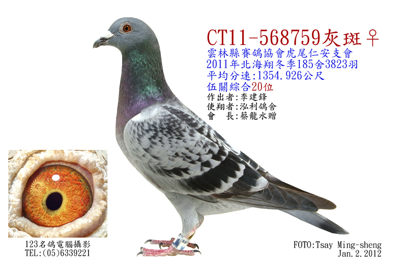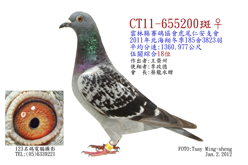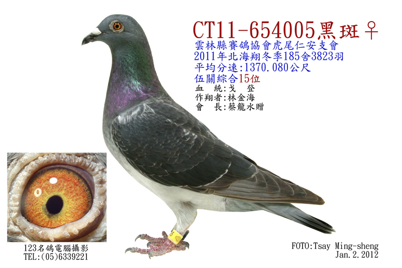 雲林縣賽鴿協會虎尾仁安支會 100年度冬季185舍3823羽 全會賽完伍關剩37羽 入賞鴿: